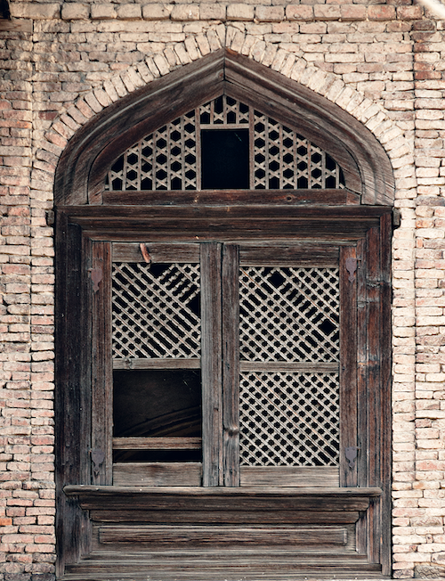 An amazing variety of vernacular architecture exists in the northern Himalayas and further eastwards – from Islamic elements of Kashmir to Buddhist Zanskar and Ladakh. After that are the Hindu styles in Himachal Pradesh, Uttarakhand and on to Buddhist Sikkim again. In Kashmir deodar timber is the main material used and its lengths are bonded with stone, all resting on stone foundations. The great number of massive deodar columns used in the Jama Masjid in Srinagar are testimony to its great value as an architectural element. The Jhelum river-front has an interesting medley of houses. Over a period of time wooden screens gave way to glass, just as mud and grass roofs gave way to the overwhelming use of galvanized corrugated iron sheets, for domestic as well as mosque construction. The mud and grass roofs were laid on birch bark on the roof structure, which made the roofs water proof and was good insulation in the extreme cold. However, hardly any houses at present have this very traditional form of roofing material.